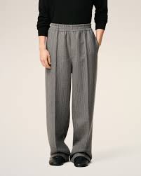 Discover timeless elegance with these Ami Paris grey wool herringbone trousers. Crafted from premium wool fabric, they feature a refined herringbone weave that adds subtle texture and sophistication. The elasticated waistband ensures all-day comfort without compromising on style, making them perfect for both professional settings and elevated casual wear. A versatile wardrobe essential that pairs effortlessly with blazers, sweaters, or shirts for a polished, put-together look.