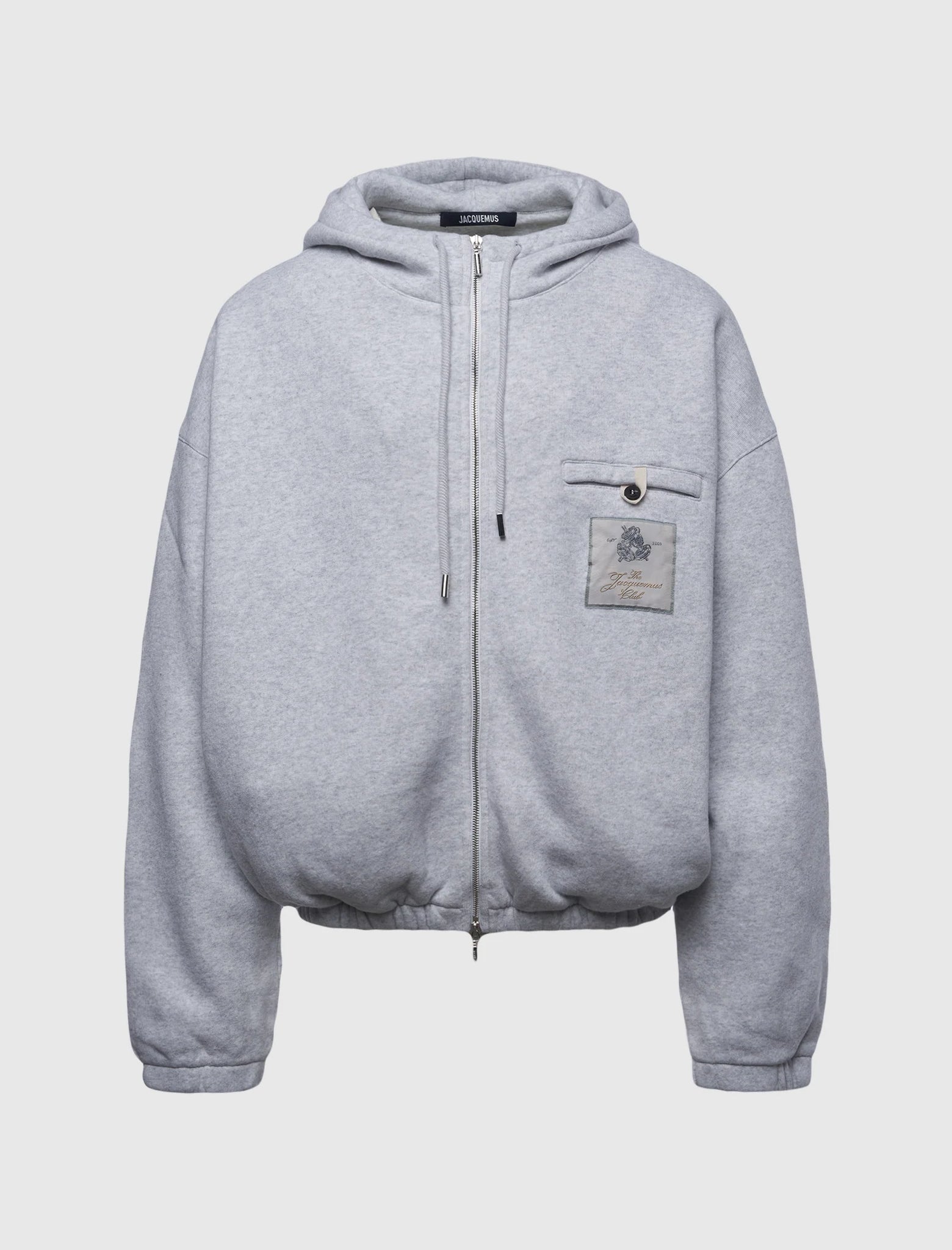 Jacquemus Le Torneo Hoodie in grey delivers an oversized silhouette with the structured presence of a lightweight jacket. Crafted with meticulous attention to detail, this piece combines the comfort of premium hoodie construction with tailored proportions that elevate casual wear. The relaxed fit drapes effortlessly while maintaining architectural definition, making it equally suited for layering or standalone styling. A sophisticated choice for those seeking elevated everyday essentials.
