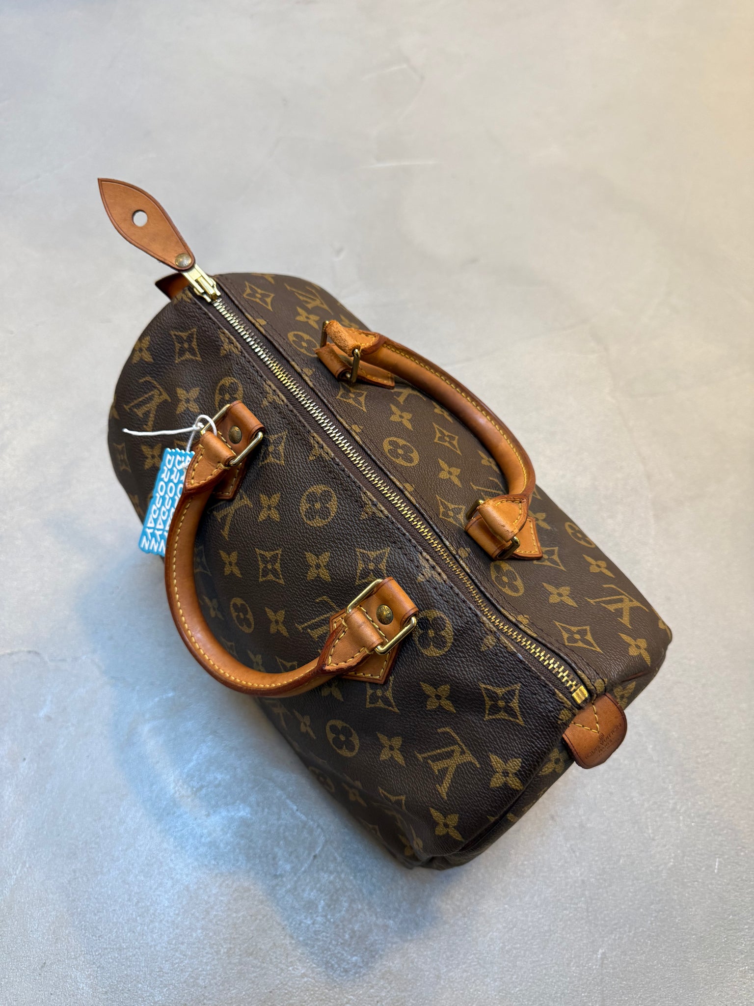 The Louis Vuitton Keepall 30 represents an iconic travel essential, crafted with the house's signature monogram canvas and leather trim. This vintage piece showcases the timeless design that has defined luxury luggage for decades. In excellent condition with no holes or stains, the bag retains its structural integrity and aesthetic appeal. The compact 30cm size offers versatility for weekend getaways or as a sophisticated carry-on, while the dual handles and optional shoulder strap provide flexible carrying options. A distinguished addition to any collection, this Keepall exemplifies enduring craftsmanship and understated elegance.