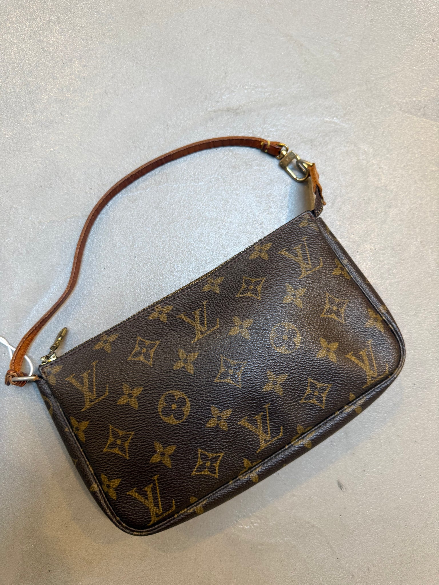 Discover this authentic Louis Vuitton Pochette, a timeless accessory that epitomizes luxury craftsmanship. This vintage piece showcases the iconic monogram canvas and refined construction that defines the house's heritage. Free from major flaws, it retains its structural integrity and signature appeal. Perfect for collectors and enthusiasts seeking a pre-owned investment piece with proven durability and enduring style. An excellent addition to any curated wardrobe.