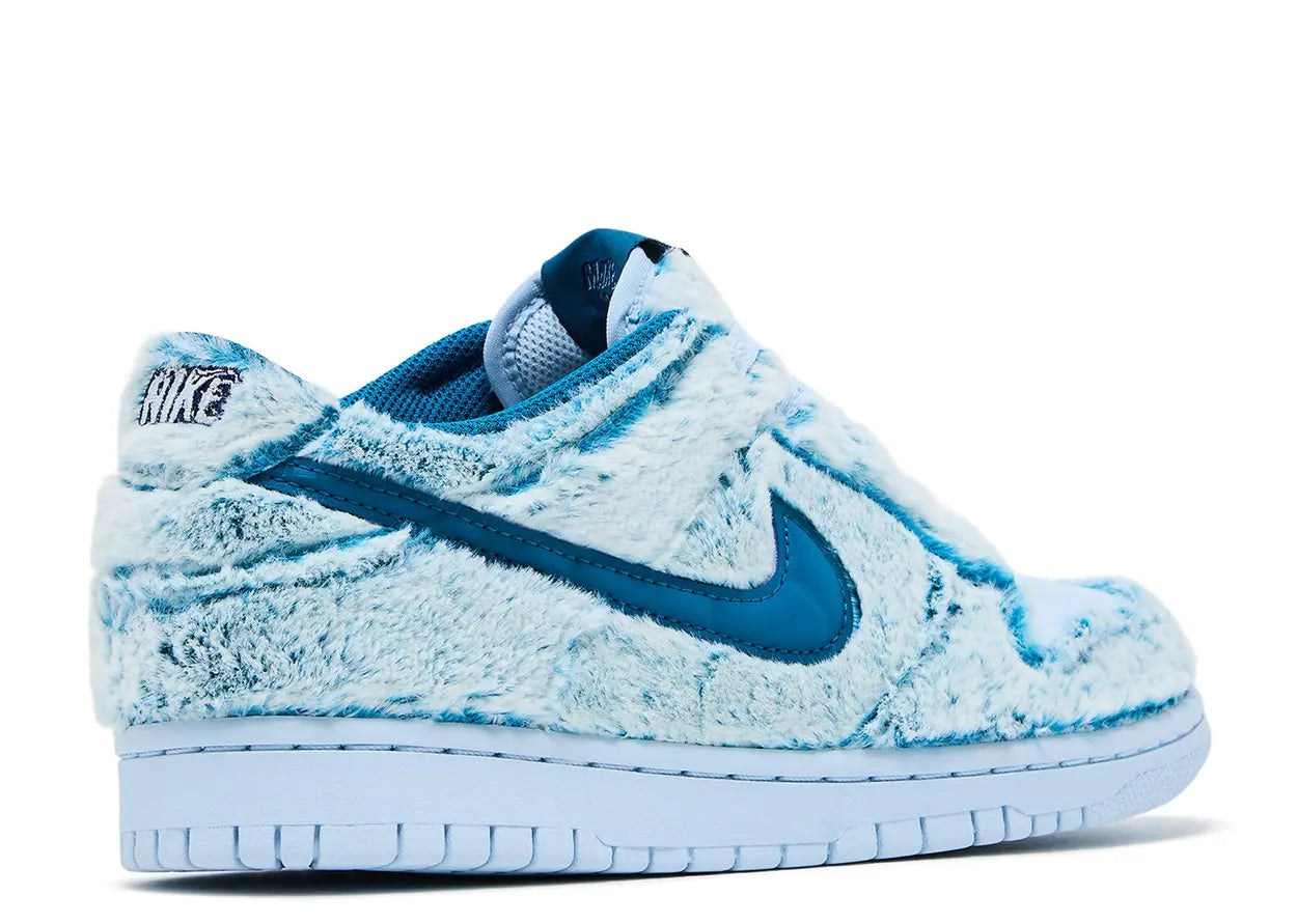 The Nike Dunk Low Abominable Snowman brings winter vibes to your sneaker rotation. Inspired by the legendary creature, this colorway features a crisp white and icy blue palette that captures the essence of snow-covered peaks. The classic Dunk silhouette delivers comfort and style with its padded collar and durable construction, making it perfect for casual wear or collecting. Whether you're a sneaker enthusiast or looking for a statement shoe, this Snowman edition stands out with its unique aesthetic and premium quality.