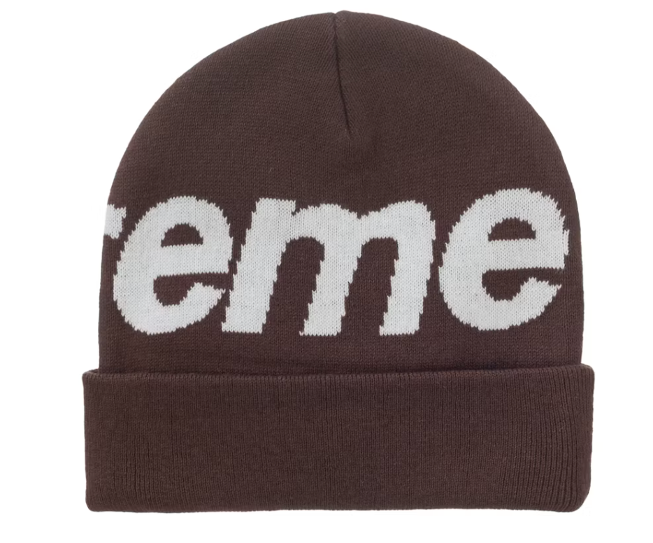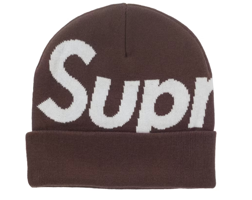 The Supreme Big Logo Beanie in brown delivers understated luxury with its signature oversized embroidered logo dominating the front. Crafted from premium ribbed knit fabric, this essential winter piece offers superior warmth and durability while maintaining a clean, minimalist aesthetic. The structured fit ensures reliable coverage through cold months, making it a versatile staple that complements any streetwear rotation. Perfect for collectors and everyday wear alike, this FW25 release combines functional design with iconic branding.