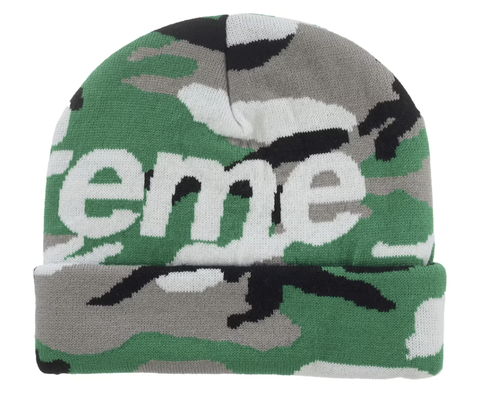 The Supreme Camo Big Logo Beanie in Green Camo delivers iconic streetwear style with understated sophistication. Featuring the signature oversized embroidered logo across the front, this beanie combines premium construction with versatile camouflage patterning. The structured fit ensures optimal comfort during cold weather, while the classic design pairs effortlessly with any casual wardrobe. A must-have piece for collectors and style enthusiasts seeking authentic Supreme quality and timeless appeal.
